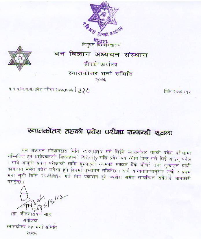 M.Sc. Entrance काे प्रवेश पत्र सम्वन्धि सुचना ।