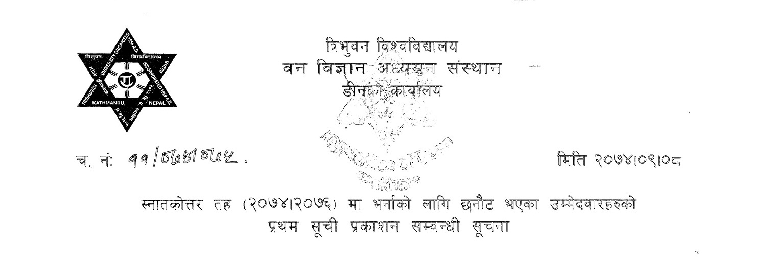 M.Sc. Entrance Result 2074 (Revised: Watershed Management)