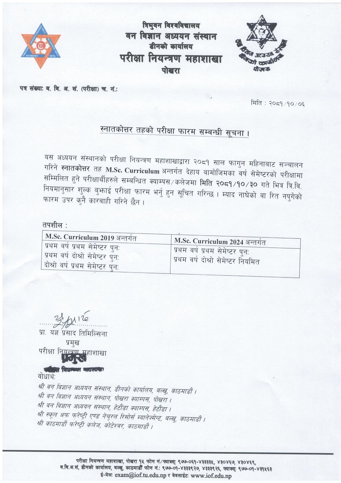 M.Sc. Examination Form Notice (2081/10/06)