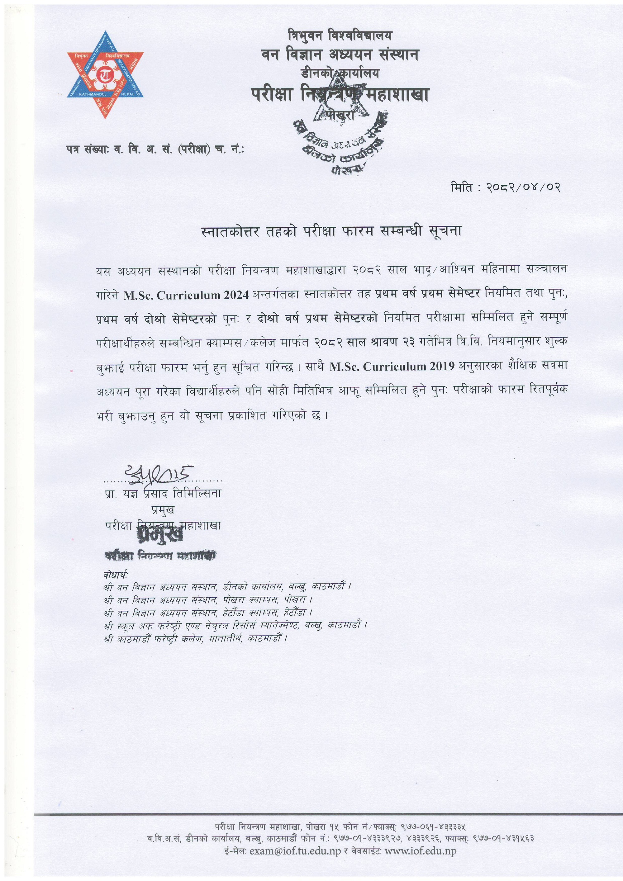 M.Sc. 1st/1st and 2nd/1st Regular Examination Result Published (2082/09/24)