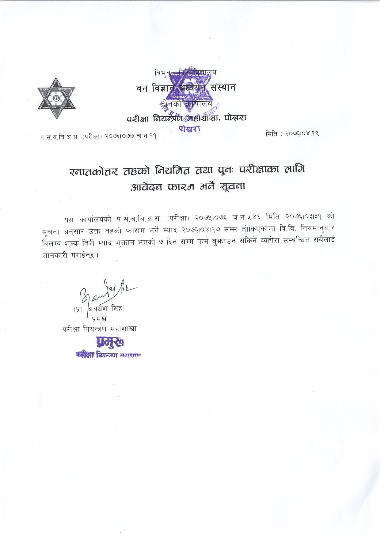 M.Sc. Examination Notice (2076/04/20)
