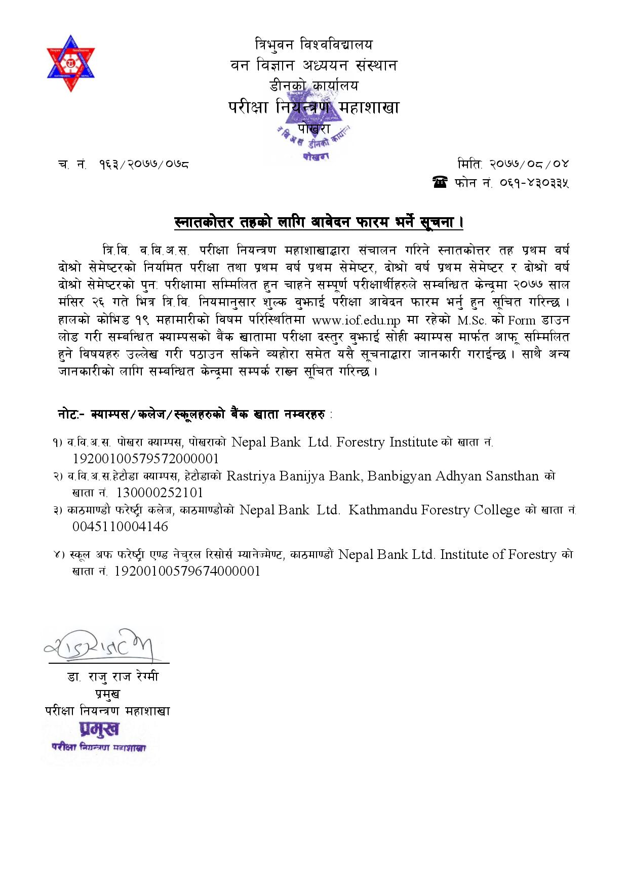 M.Sc. Examination Notice 2077