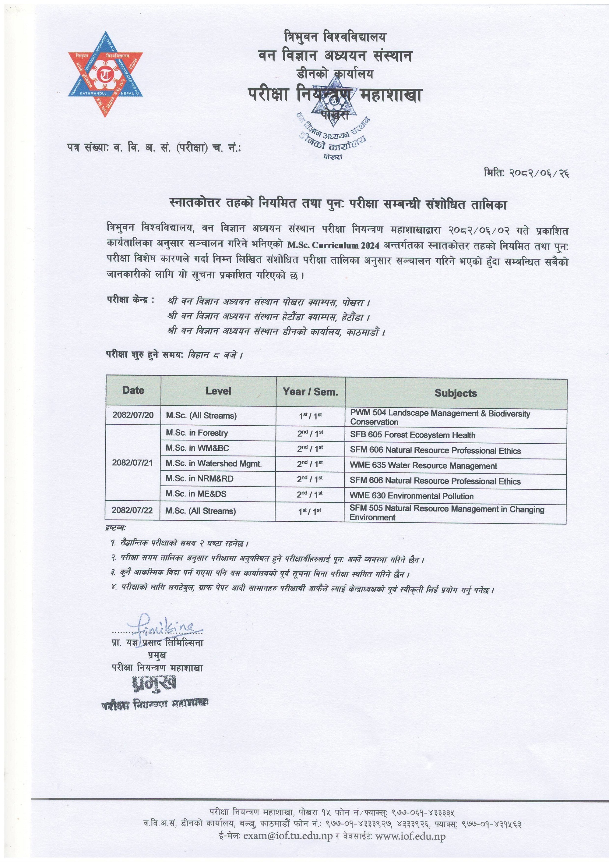 स्नातकोत्तर तह (M.Sc.) २०८२-०८४ काे भर्ना तेस्रो सूची प्रकाशन गरिएको ।
