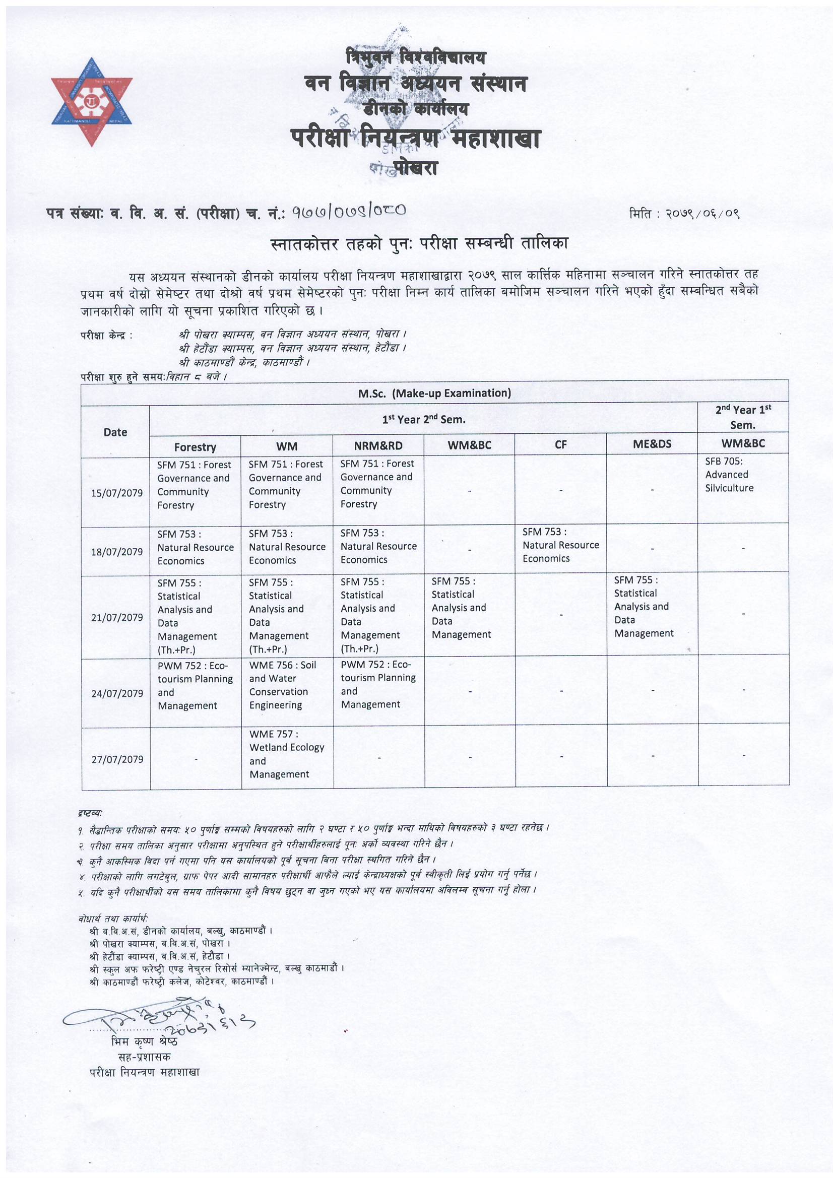 M.Sc. Make-up Examination Routine (2079/06/09)
