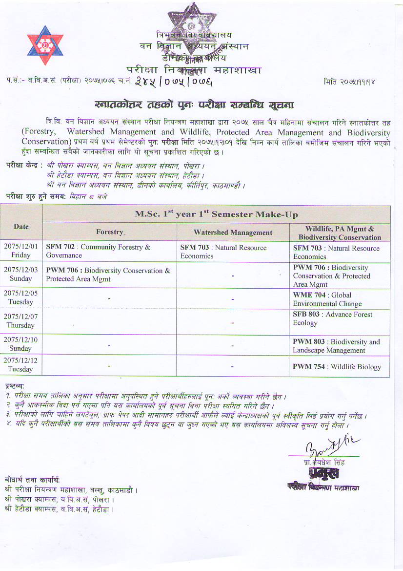 M.Sc. Make-Up Examination Routine Published (2075/11/14)