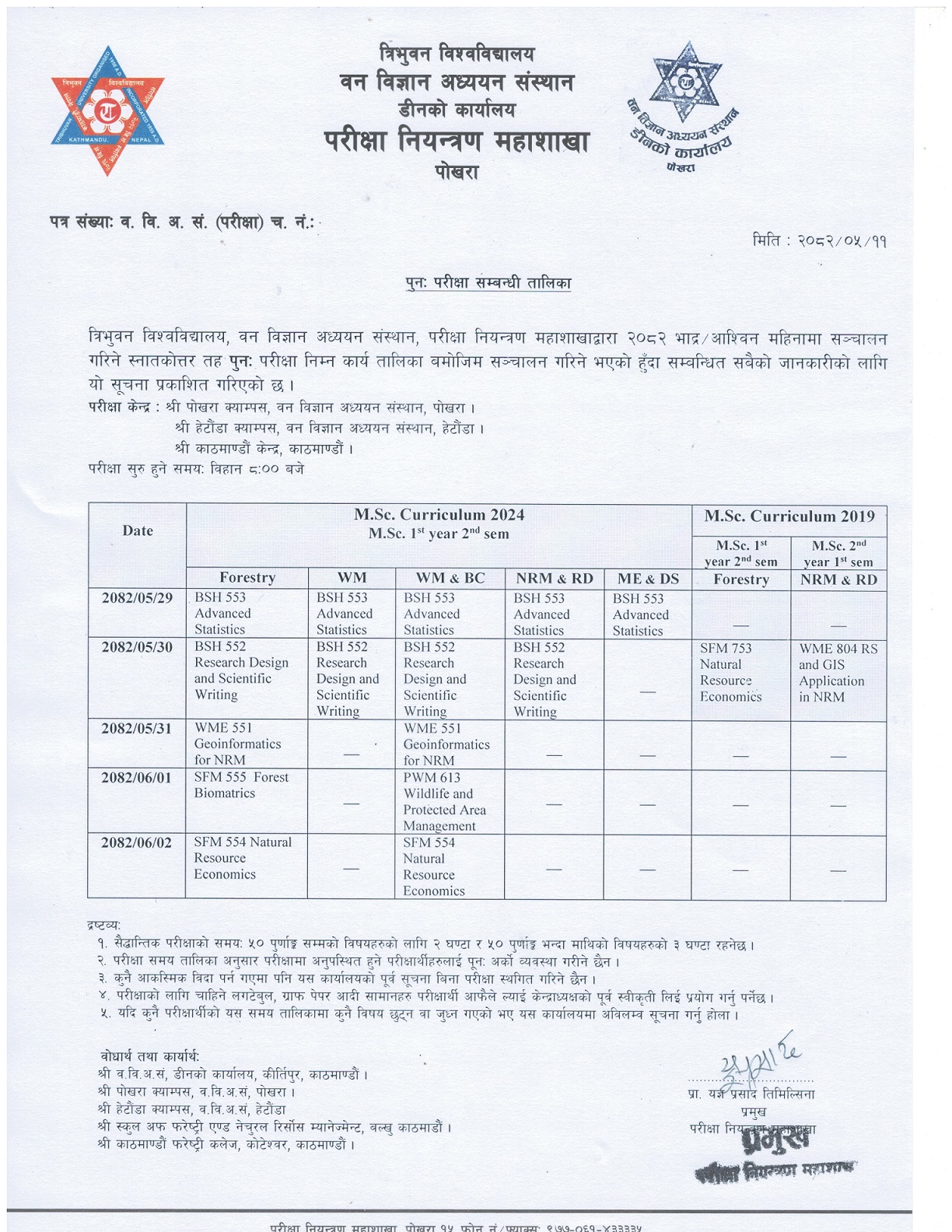 M.Sc. Makeup Examination Routine 2082/05/11