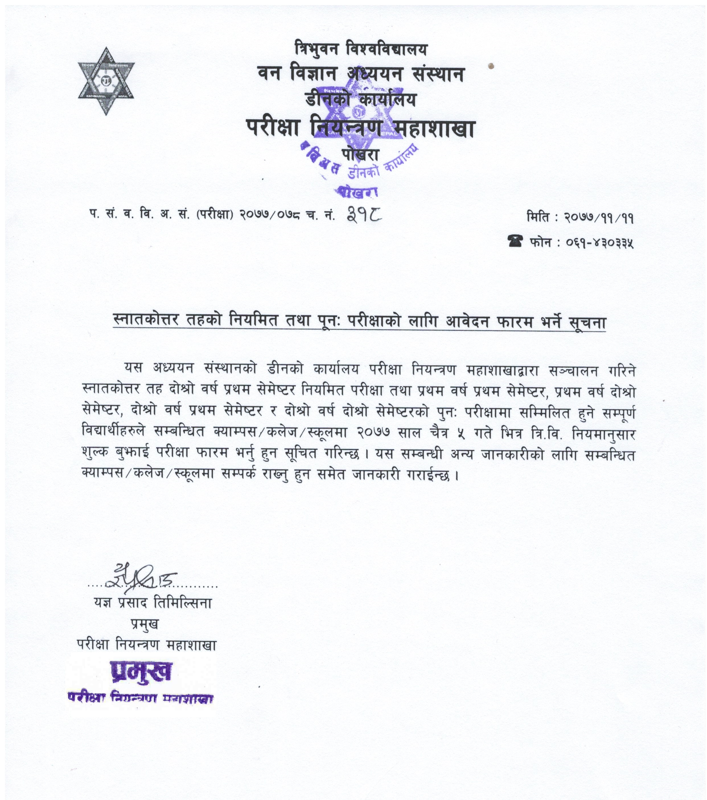 M.Sc. Regular & Make-up Examination Notice (2077/11/11)