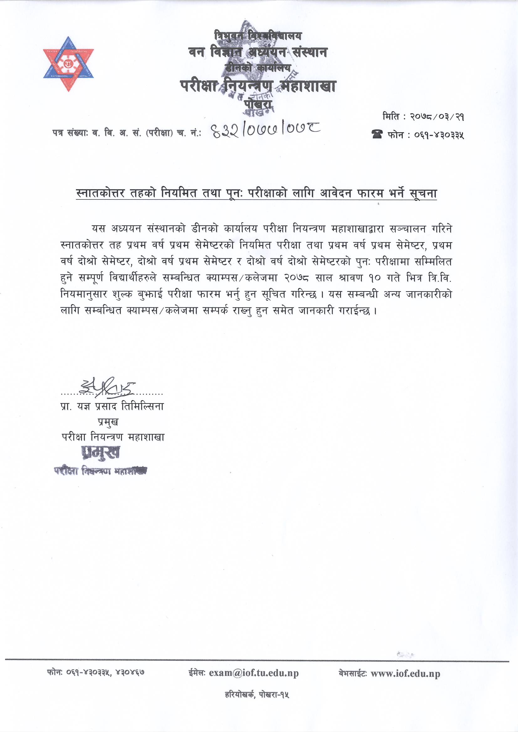 M.Sc. Regular & Make-up Examination Notice (2078/03/21)