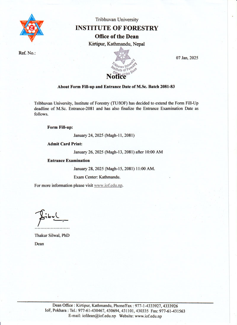 MSc Entrance (2081-083 Batch) Form Fill up Date Extended (2081-09-23)