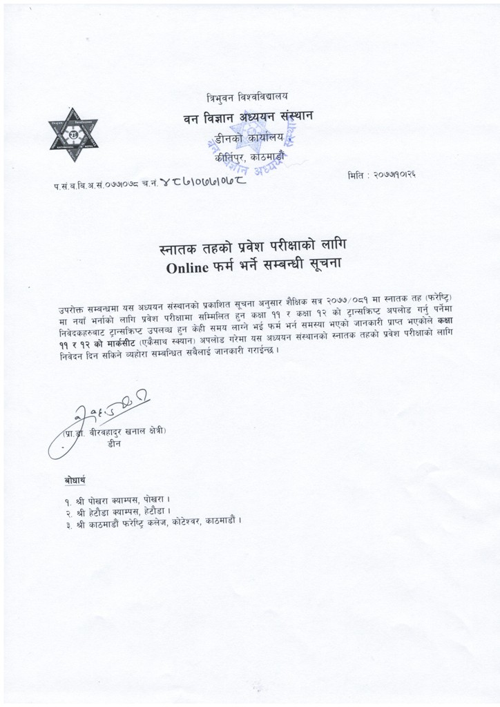 Notice Regarding BSc Entrance Application for those students who did not get their trancript for +2 level.