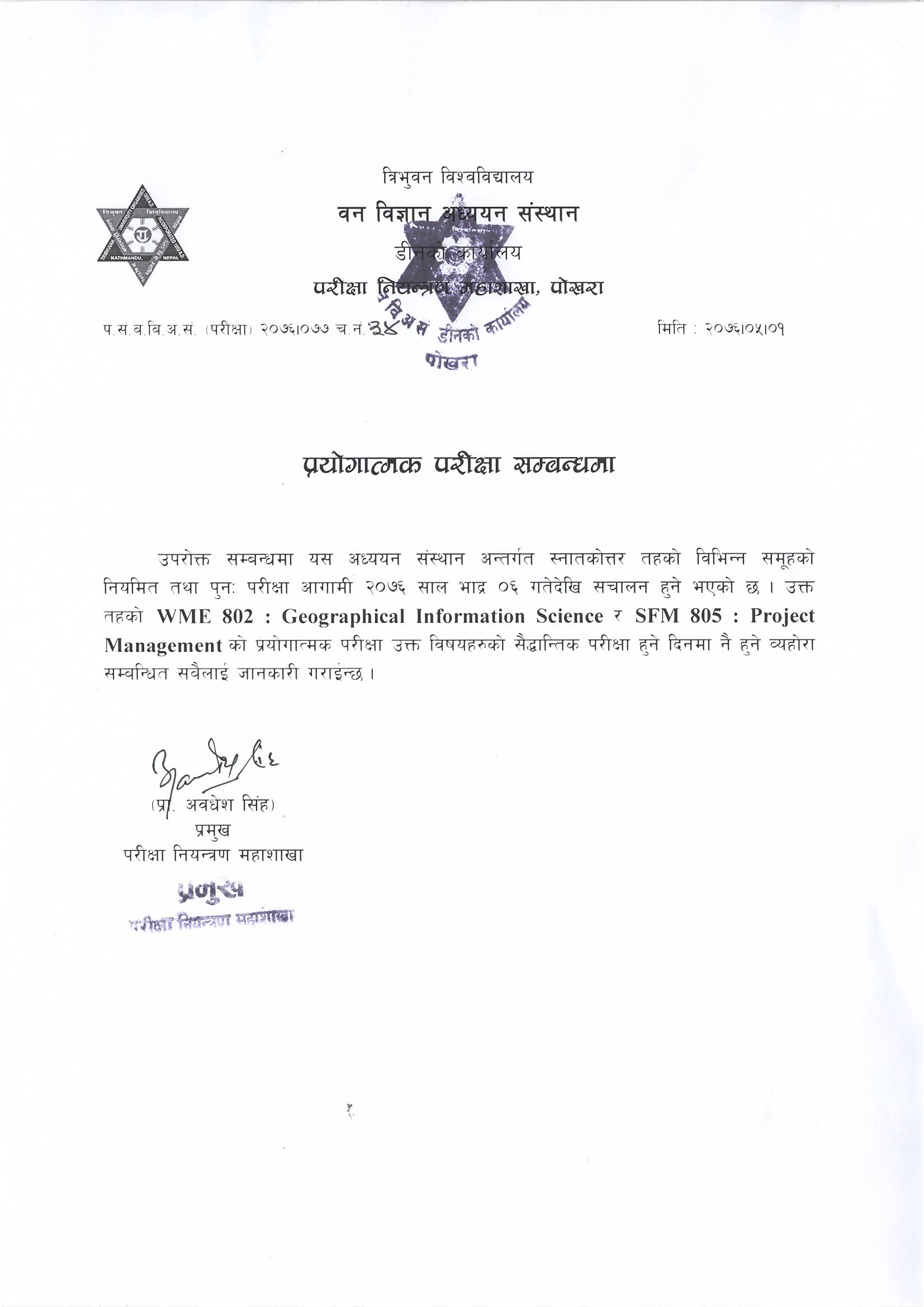 Notice for M.Sc. Practical Examination (2076/05/01)