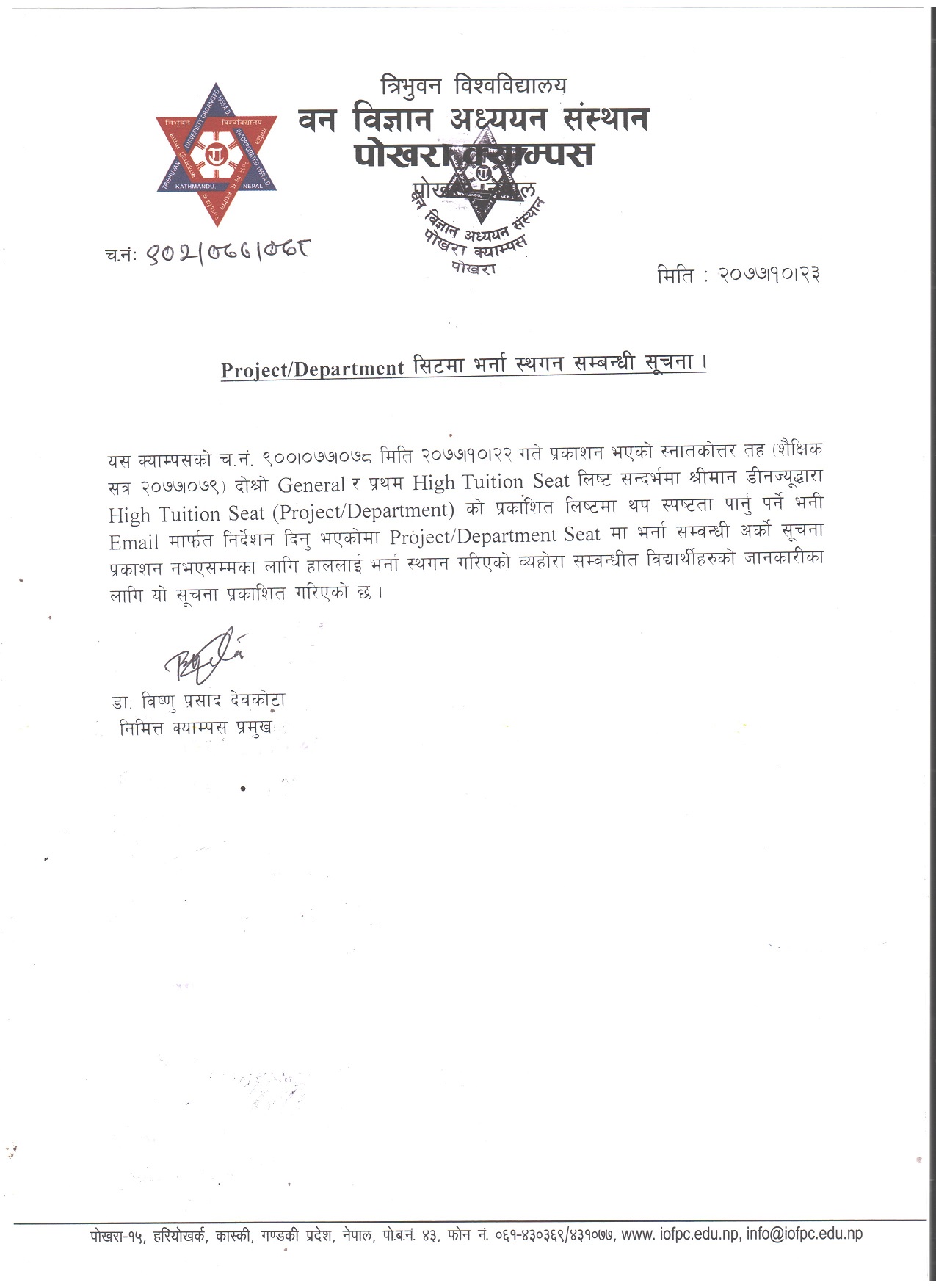 Project/Department सिटमा भर्ना स्थगन सम्वन्धमा - वन क्याम्पस पोखराको हकमा