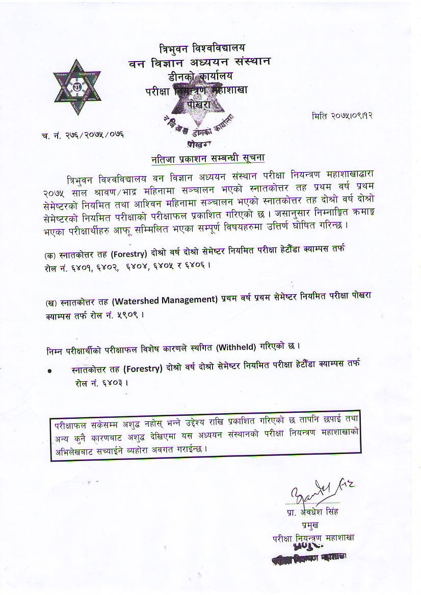 Result Published for M.Sc. (2075/09/12)