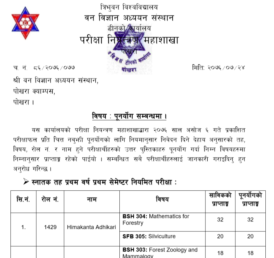B.Sc 1st/2nd Regular & M.Sc. Make-up Examination Result Published (2082/09/25)