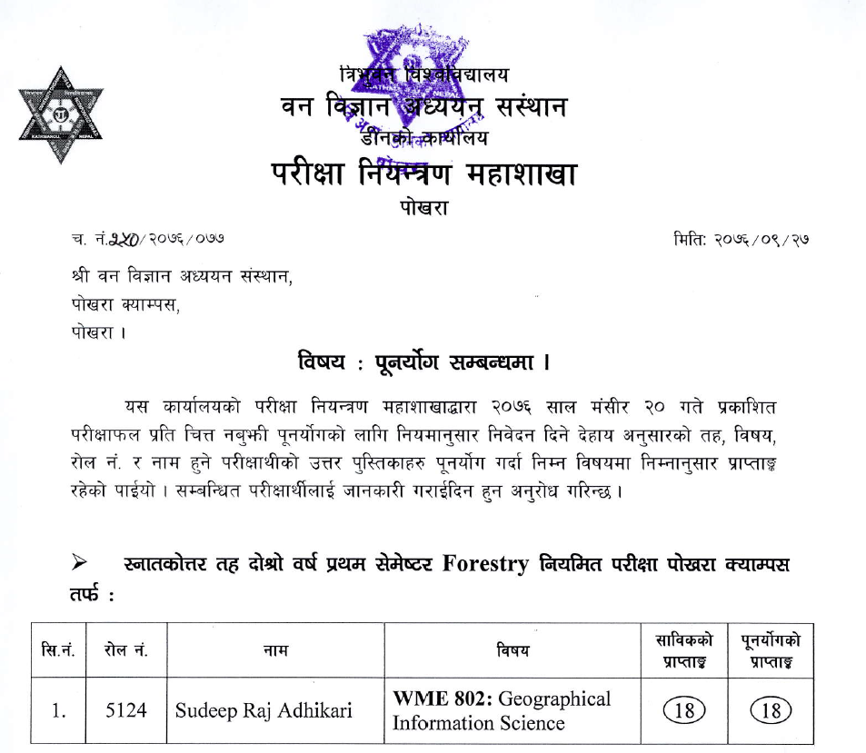 B.Sc 1st/2nd Regular & M.Sc. Make-up Examination Result Published (2082/09/25)