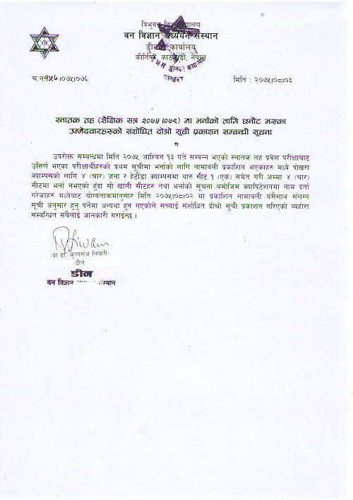 Revised B.Sc. Forestry Entrance Examination Result General and Capitation List (2075/08/03)