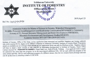 Revised Notice of M.Sc. Entrance Examination for the Batch 2075-077 BS (2019-2021 AD)